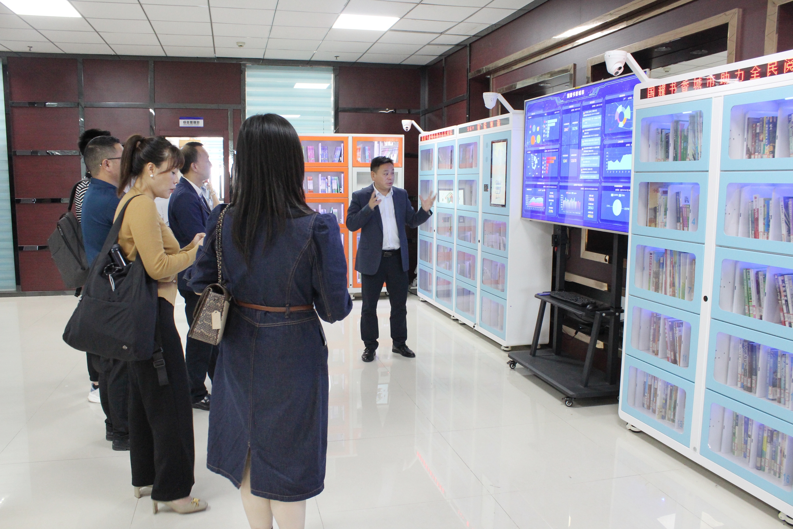 會后,陳浩同志帶領(lǐng)與會人員參觀了國耀科技智慧閱讀大廳,并向他們詳細(xì)地介紹了“國耀書香城市”項(xiàng)目的運(yùn)營模式和智慧閱讀平臺大數(shù)據(jù)系統(tǒng),共同探討了智慧閱讀模式與現(xiàn)代服務(wù)行業(yè)發(fā)展共通點(diǎn)。