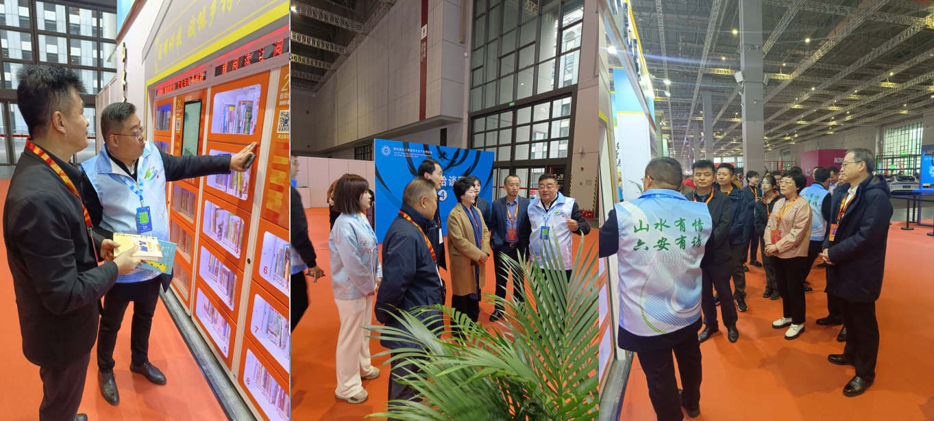 展會(huì)現(xiàn)場,六安市委副書記、宣傳部長車照啟,六安市政府副市長魏武、六安市文化和旅游局局長蔡黎麗等領(lǐng)導(dǎo)蒞臨六安館,并參觀了國耀智能書柜。