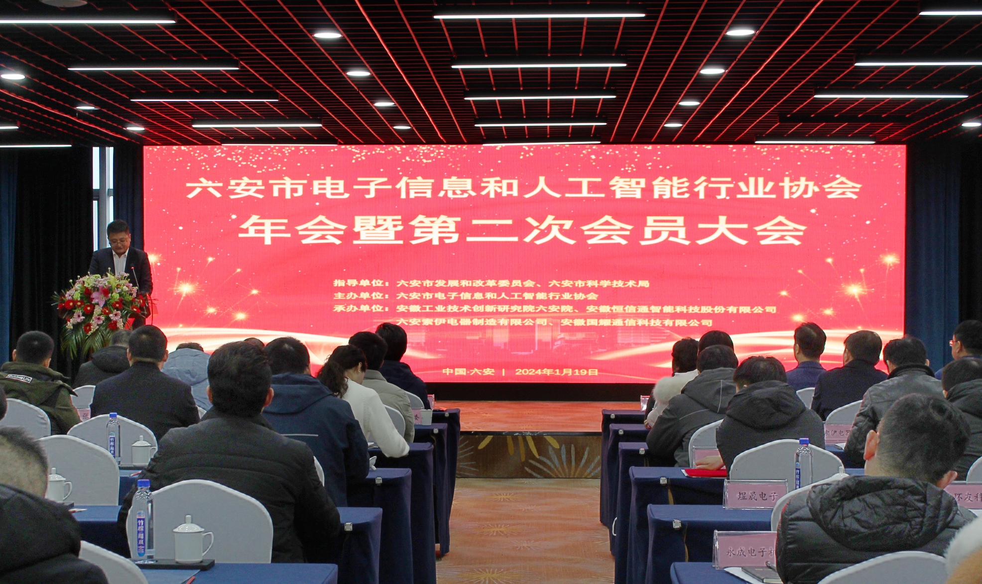 2024年1月19日下午,六安市電子信息和人工智能行業(yè)協(xié)會首屆年會暨第二次會員大會在六安市索伊大酒店隆重舉行,市人大副主任司敏、市政協(xié)副主席王仲儒、市政府副秘書長胡坤,市發(fā)改委、市科技局、市科協(xié)等相關(guān)單位領(lǐng)導(dǎo),中科大、安大專家教授、協(xié)會成員單位負(fù)責(zé)人等百余人參加此次盛會,會議由安徽工研院六安院副院長、協(xié)會會長鄭守國主持。