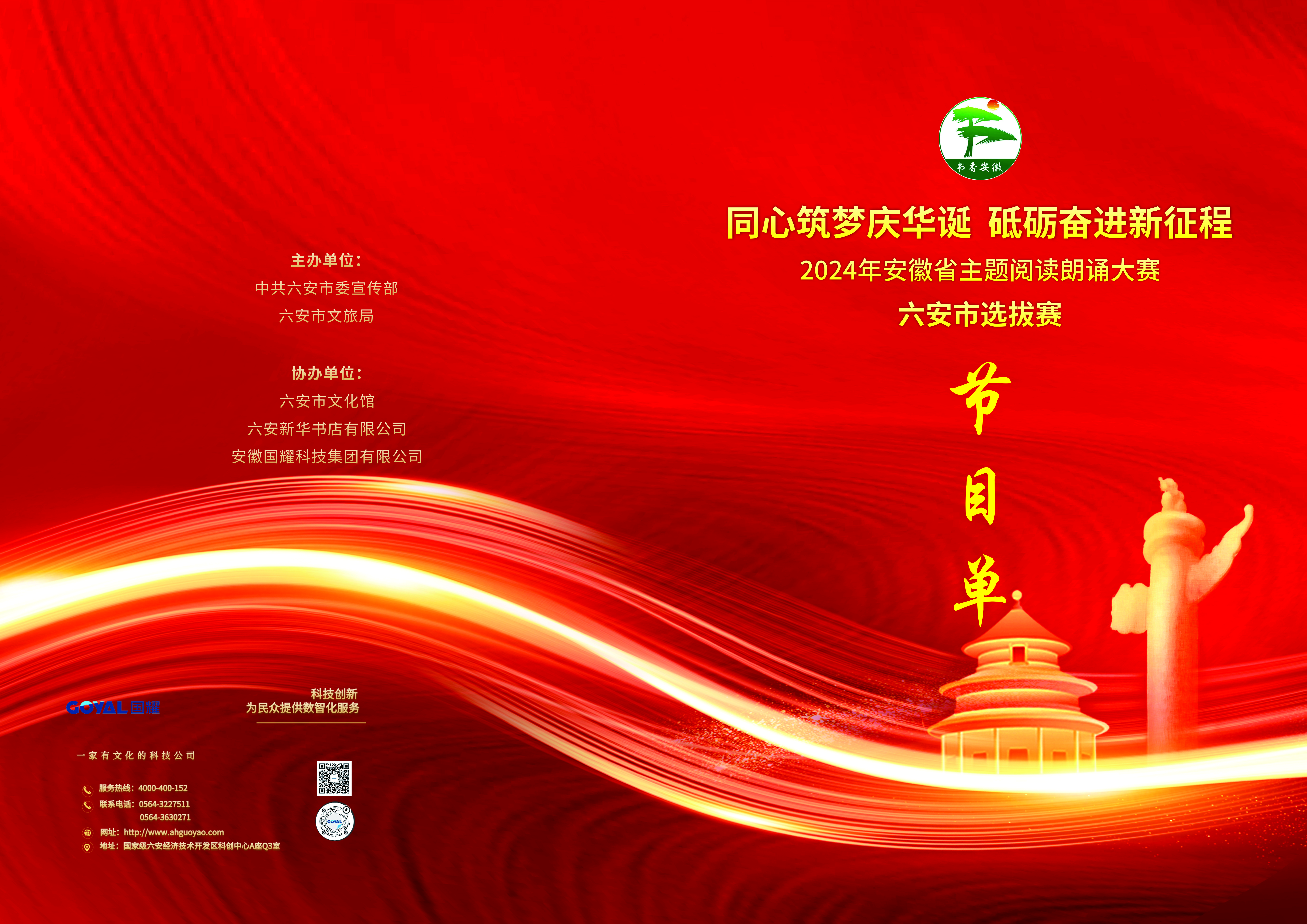“同心筑夢慶華誕 砥礪奮進(jìn)新征程”2024年安徽省主題閱讀朗誦大賽六安市選拔賽由中共六安市委宣傳部、六安市文化和旅游局主辦,六安市文化館、六安新華書店有限公司、安徽國耀科技集團(tuán)有限公司協(xié)辦?;顒幼蚤_展以來,引發(fā)了廣泛關(guān)注和熱烈響應(yīng),來自全市的文學(xué)愛好者、學(xué)生代表以及各界群眾踴躍報名參加,大賽競爭激烈。