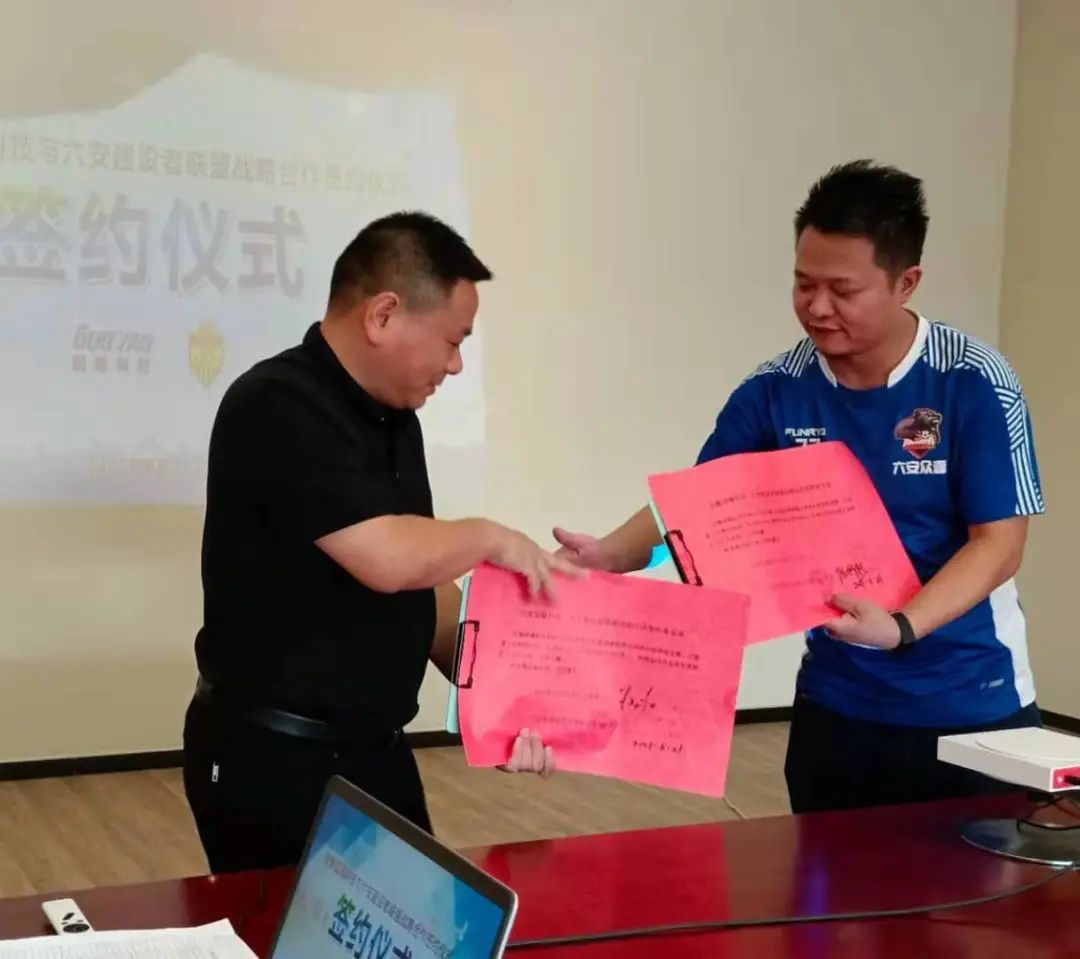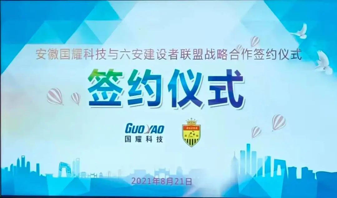 2021年8月21日下午,在六安市體育中心會(huì)議室,安徽國(guó)耀通信科技有限公司與六安建設(shè)者足球聯(lián)盟簽訂戰(zhàn)略合作協(xié)議,這標(biāo)志著雙方在長(zhǎng)期友好合作的基礎(chǔ)上,結(jié)成了優(yōu)勢(shì)互補(bǔ)、強(qiáng)強(qiáng)聯(lián)合的戰(zhàn)略合作伙伴。安徽國(guó)耀通信科技有限公司總經(jīng)理陳浩、六安建設(shè)者聯(lián)盟代表、隊(duì)長(zhǎng)陳科新等出席簽約儀式。