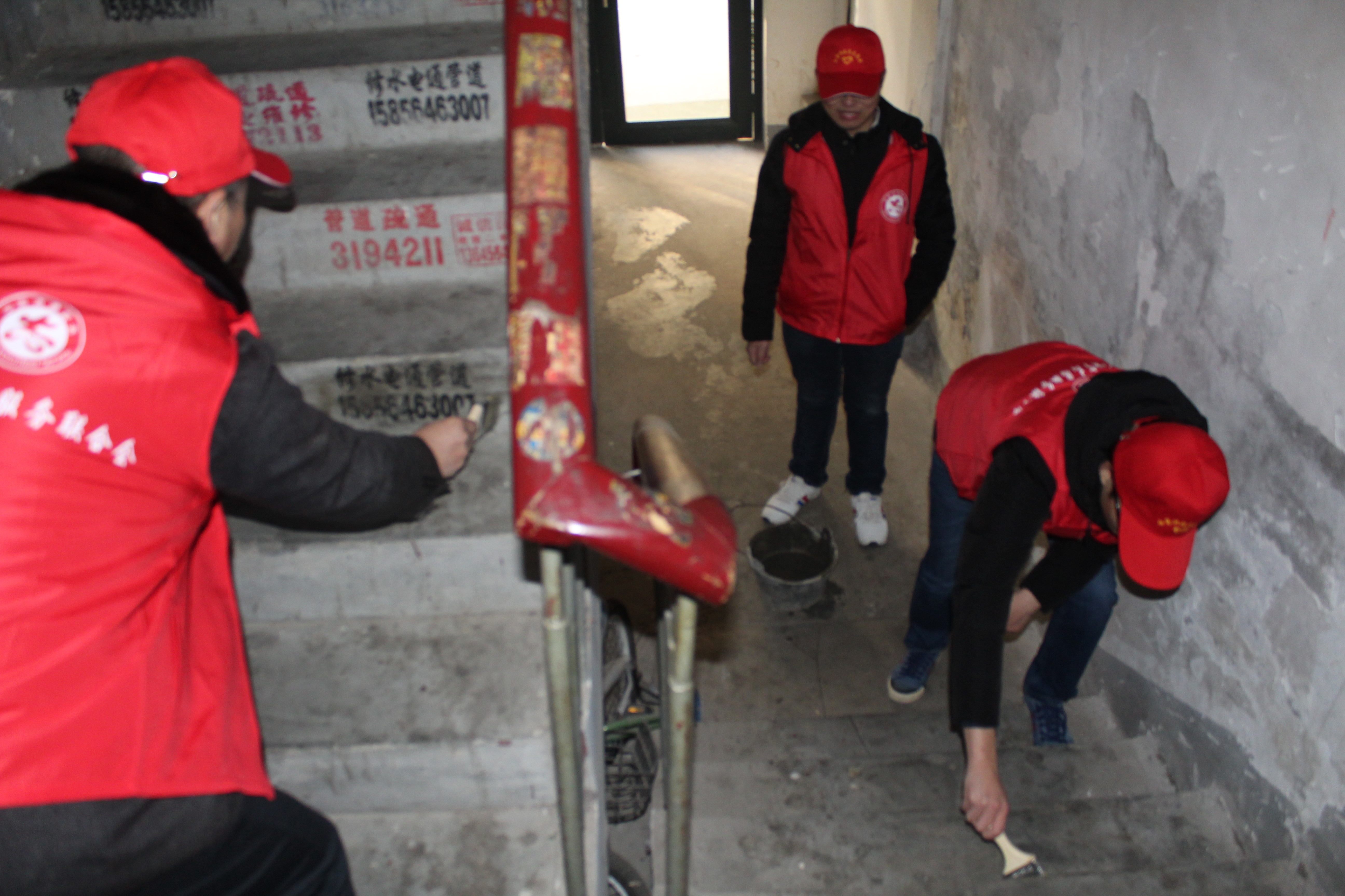 首先在小區(qū)大門口集合,經(jīng)過(guò)簡(jiǎn)短的研究討論,分成兩大隊(duì):入戶宣傳隊(duì)和小廣告清理隊(duì)。志愿者們兩人形成一個(gè)小組,投入行動(dòng)。