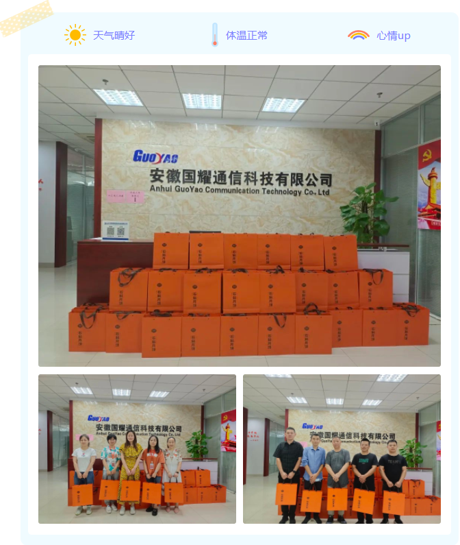 安徽國(guó)耀通信科技有限公司一直重視對(duì)員工的節(jié)日關(guān)懷,每逢佳節(jié)總少不了溫暖的祝福和體貼的福利,讓每一位員工感受到家一般的溫暖。