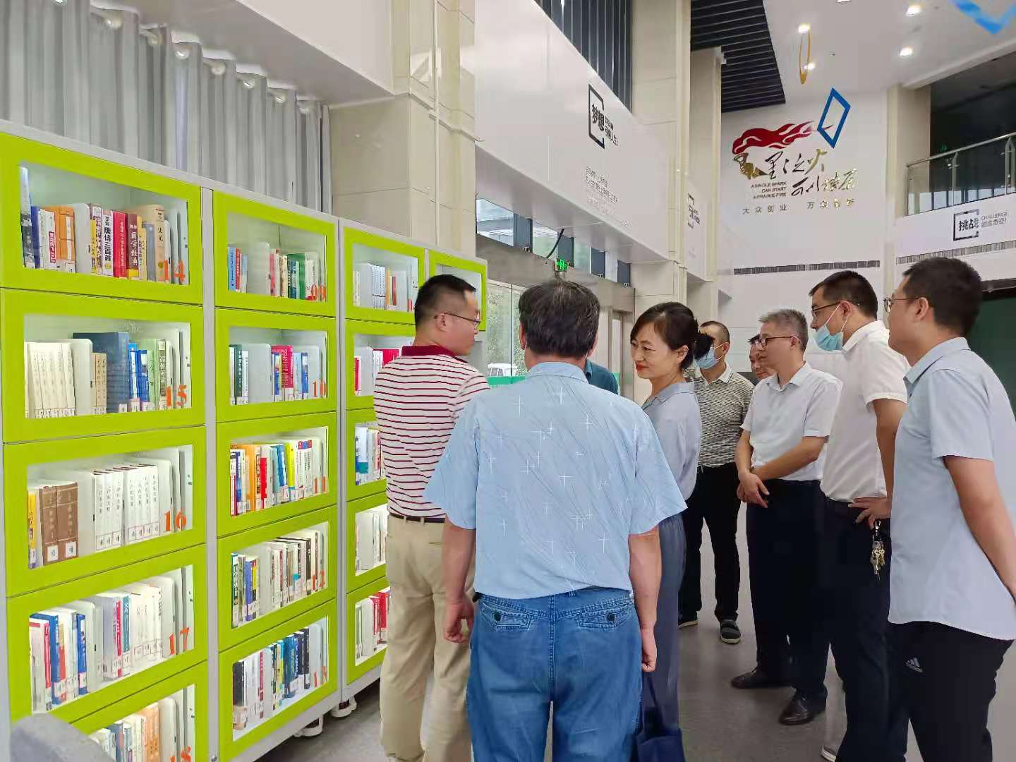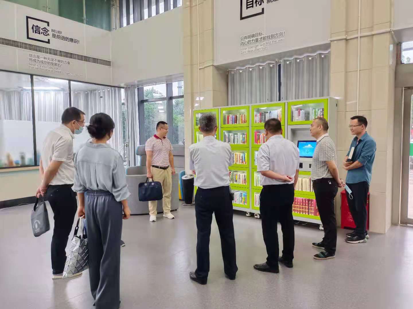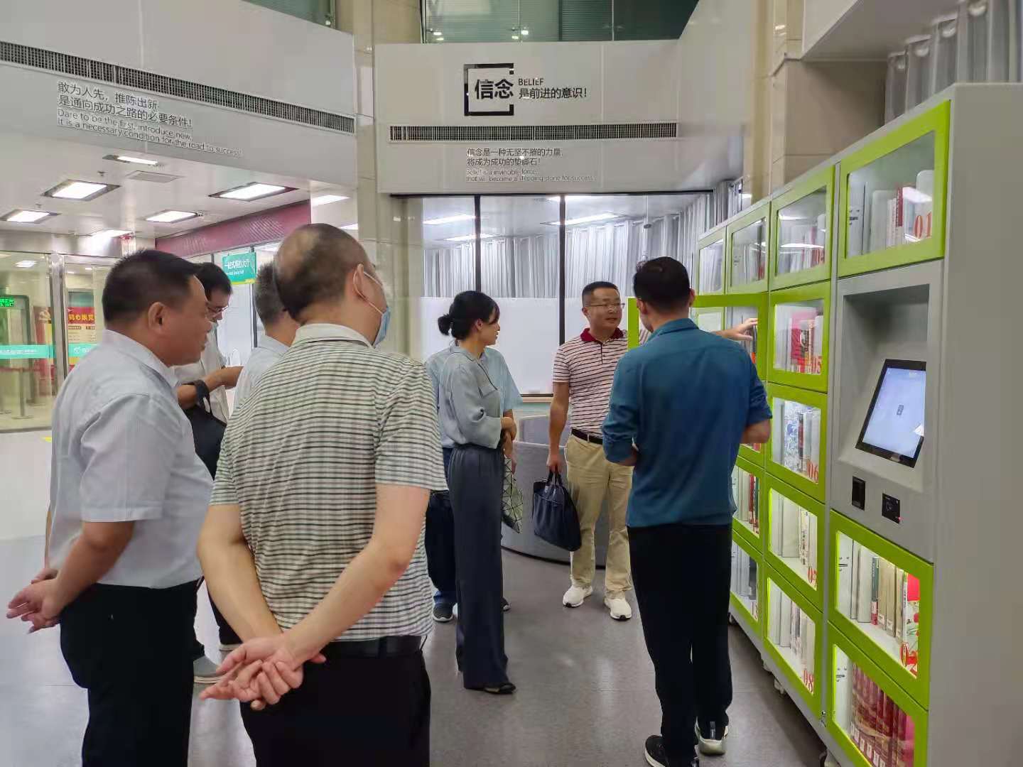 會后,安珺一行來到公司自主研發(fā)的智能書柜前,實地察看智能書柜的預(yù)借、借閱、歸還、查詢、資源共享、數(shù)據(jù)統(tǒng)計等功能,大家一致認為該書柜具有提供圖書多點布置、讀者自助操作簡單方便的特點,可以提供人性化的功能需求,讓文化的傳播和科技相結(jié)合,真正開創(chuàng)了一個好讀書、勤讀書、讀好書、善讀書的圖書服務(wù)平臺,將成為社會一道亮麗的文化科技風(fēng)景線。
