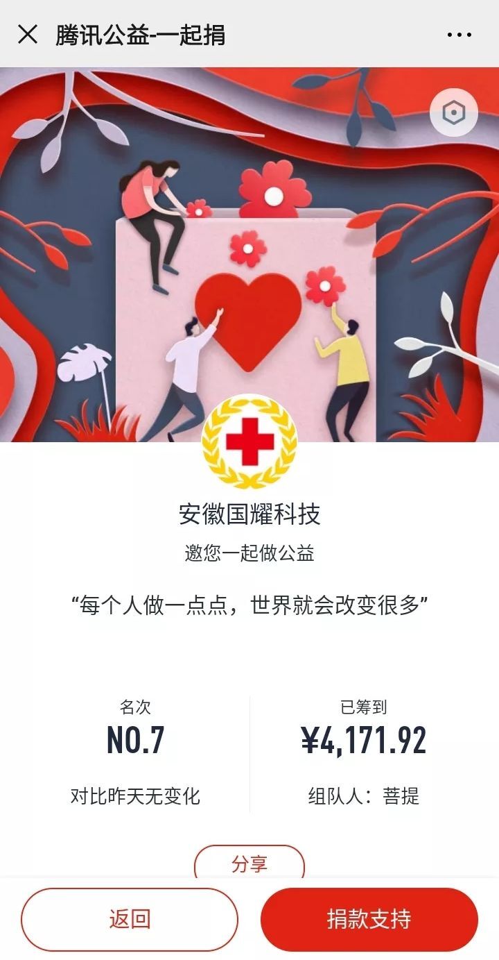 行動(dòng)勝于一切。安徽國耀通信科技有限公司黨支部、工會(huì)組織公司黨員、職工積極為抗疫工作捐款,截止目前,已有46人參與。目前捐款活動(dòng)還在進(jìn)行中。同時(shí),為保障裕安區(qū)應(yīng)急廣播宣傳抗疫工作,安徽國耀通信科技有限公司組織人員、車輛赴杭州購買器材設(shè)備,為全市抗疫工作積極作為。國耀科技黨支部組織黨員志愿者一起捐。